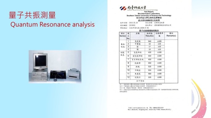 附圖一就是生物訊息的量子共振頻譜檢測.