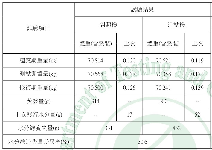 受測者並不知道受測時穿的實驗組或是對照組的衣服,等同是單盲試驗。