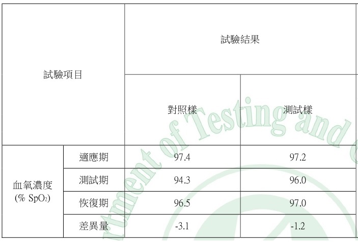 從血氧量來看,穿著實驗組在運動過程中為96%,高於醫學界認定人體是否處於缺氧狀態的臨界值95%,這時候,因為處於不缺氧的狀態下,受測不至於快速堆積乳酸,所以可以有更好的續航力。